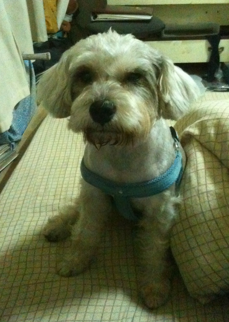 晶片上品種登記是迷你雪納瑞。身體毛已經剪短,未斷尾,腳長。走失時身上帶著藍色背帶。照片中右眼因日前罹患眼疾,近日已好轉。